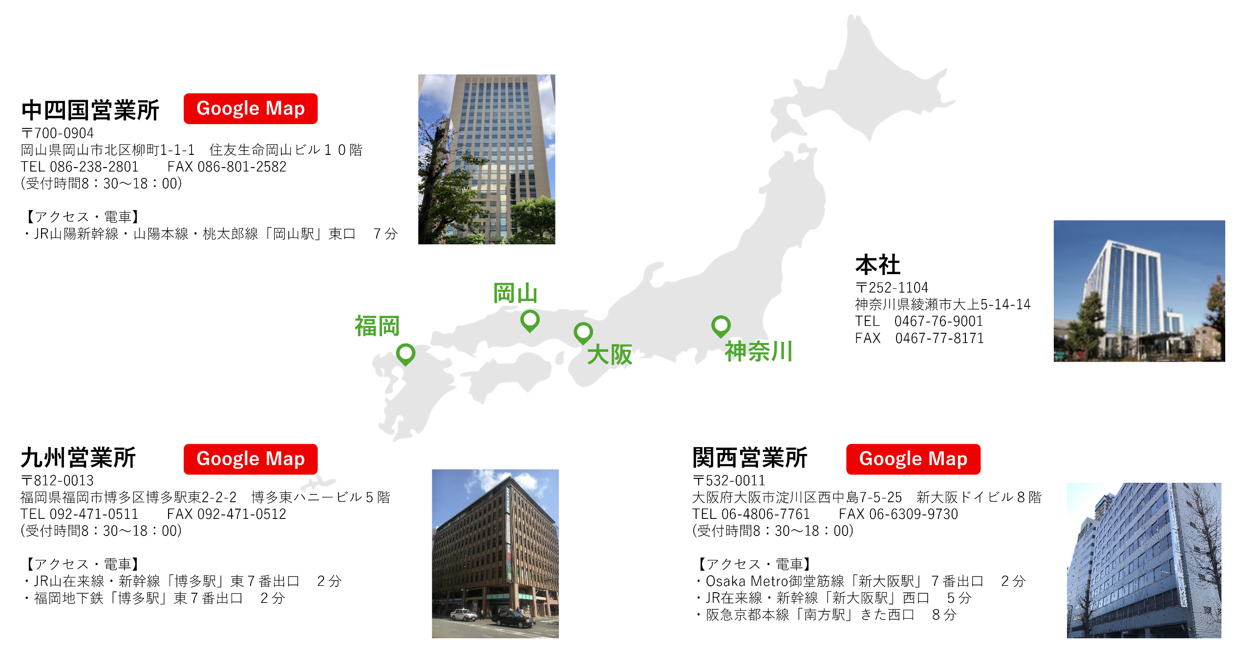 ご相談から発注まで、最寄の営業所で対応しておりますので、どうぞお気軽にお問い合わせください。
